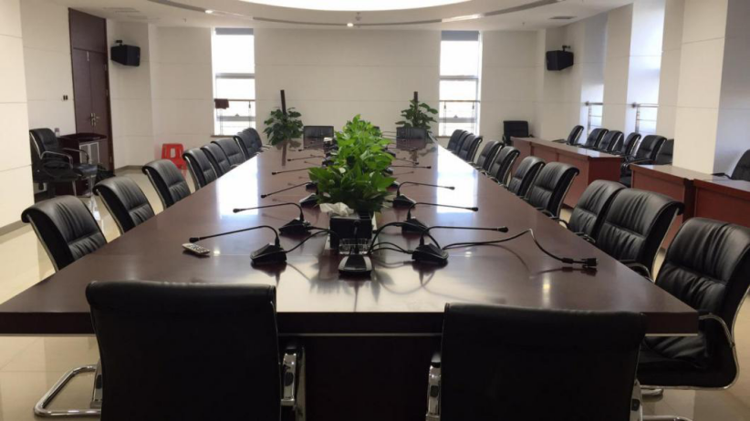 The professional sound reinforcement system includes sound sources, audio processing equipment, power amplifiers and speaker systems. The system was designed by calculating the acoustic venue coefficient of the conference room and can ensure that the sound effects in each corner of the conference room are clear, without distortion, and the sound field is evenly distributed.