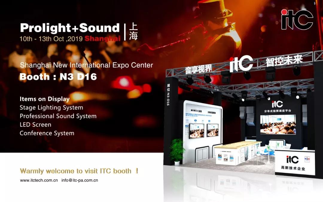 ITC demonstrates its strength, sticks to its inspiration and exchanges information from home and abroad at the Prolight+Sound Shanghai, 2019. Welcome to visit ITC headquarter for the showroom and visit our factory after the exhibition.