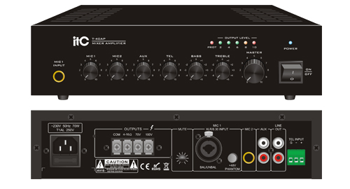 * Two kinds of power output methods: constant pressure output 100V, 70V; constant resistance output 4 ~ 16Ω.