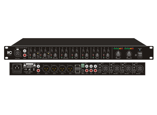 * 4 RJ45 bus balanced inputs, whose volume is adjustable, and can be mixed correspondingly into 4 channel XLR outputs.