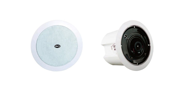 Indoor high-end ceiling speakers, plastic flame-retardant rear cover, screw-fixed presser foot system; vent holes enable perfect sound reproduction; suitable for hotels, clubs, etc.