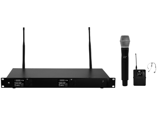 * The system includes a receiver + a handheld wireless microphone + a headset wireless microphone.