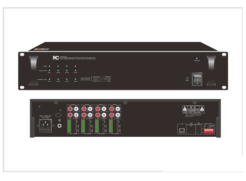 The master/slave switcher provides redundant backup for the power amplifier of the public broadcasting system, ensuring that the broadcast sound will not be interrupted due to damage to the power amplifier. It monitors the status of the main and standby power amplifiers in real time, automatically switches and recovers, and ensures that the signal can be directly output to the power amplifier even in the event of a power outage.