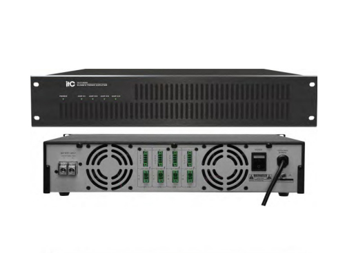 It is a Class-D digital amplifier which is used for the voice signal broadcasting in EVAC system. And it is a 2U device that integrates 4 independent PFC functions, a power-saving control module, and the 120W/240W/350W/500W power amplifier with DC24V power interface, 4 channels.