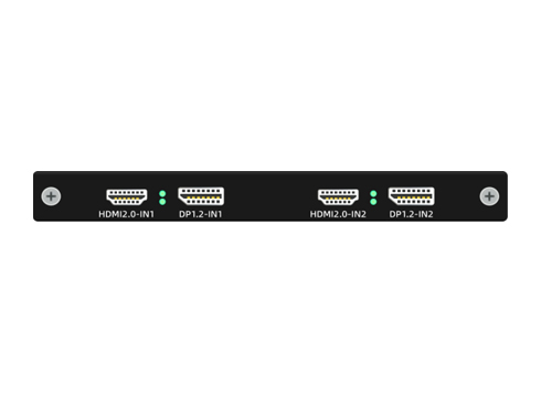 2-way HDMI2.0+2-way DP1.2 input card, support EDID management, support channel-associated audio input, maximum support 4096*2160@60Hz resolution, with max width of 7680 and max height of 4800, the usage mode supports HDMI2.0 and DP1.2 optional.