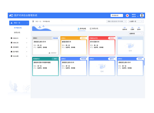 * It supports an overview of surgical extensions and collaborative extensions, real-time monitoring of the online status of the equipment and surgical information, and can search according to preoperative preparation, waiting for surgery, during surgery, after surgery, in recovery, and idle status.