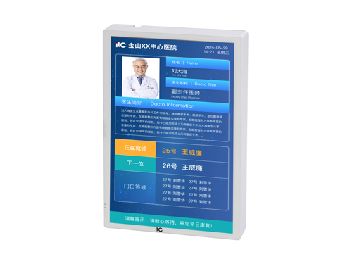 The secondary triage screen is placed at the entrance of the clinic or the examination window. It is suitable for medical scenarios, displays the information of the attending doctors and the patient queue information, and supports number calling playback.