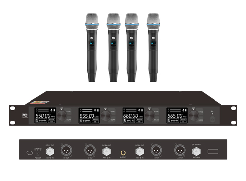 * The receiver features four 2.2-inch TFT-LCD displays, allowing users to easily view device RF signal strength, audio signal strength, microphone on/off status, handheld microphone battery level, current frequency, volume, language switching options, and more, providing current device information .