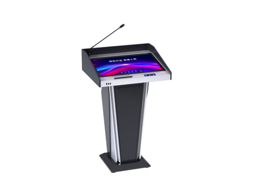 1. built-in 4.6-inch touch screen supports controlling the computer's power on and restart; adjusting the podium to rise and fall; turning the gooseneck microphone on and off, and adjusting the volume of the gooseneck microphone and handheld microphone; and quickly opening presentation software, PPT, and file page turning functions.